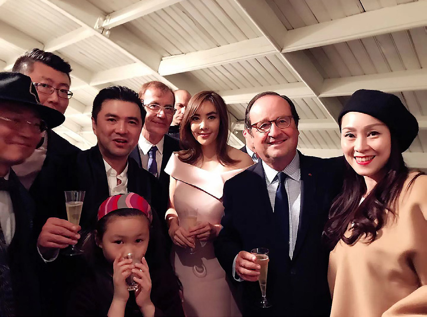 开幕当天,法国前总统奥朗德、中国驻法国大使馆文化参赞李少平、巴黎中国文化中心主任严振全、拿 破仑后裔那不勒斯王子缪拉、国际汽联主席 . 法拉利老总让·托德、中国社会经济文化交流协会会长姚佳、副 会长王军生、中国社会经济文化交流协会秘书长刘彤、法国中法友谊互助协会会长吴时敏等中法两国各界名 流二百余人出席了开幕酒会。